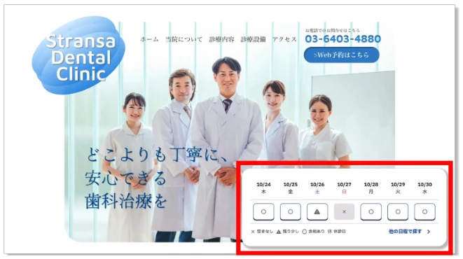 サイトを訪れた患者さんに「今、予約できる」ことが一目で伝わり、その場での予約行動につながります。