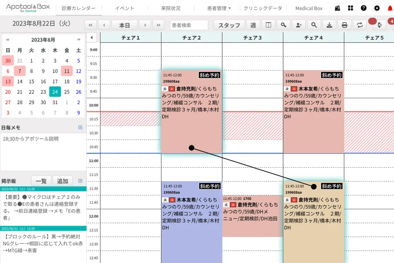 歯科医院で同一患者が同日に複数予約を持つ際、片方のみの変更・キャンセルによるアポミスを防ぐ新機能です。