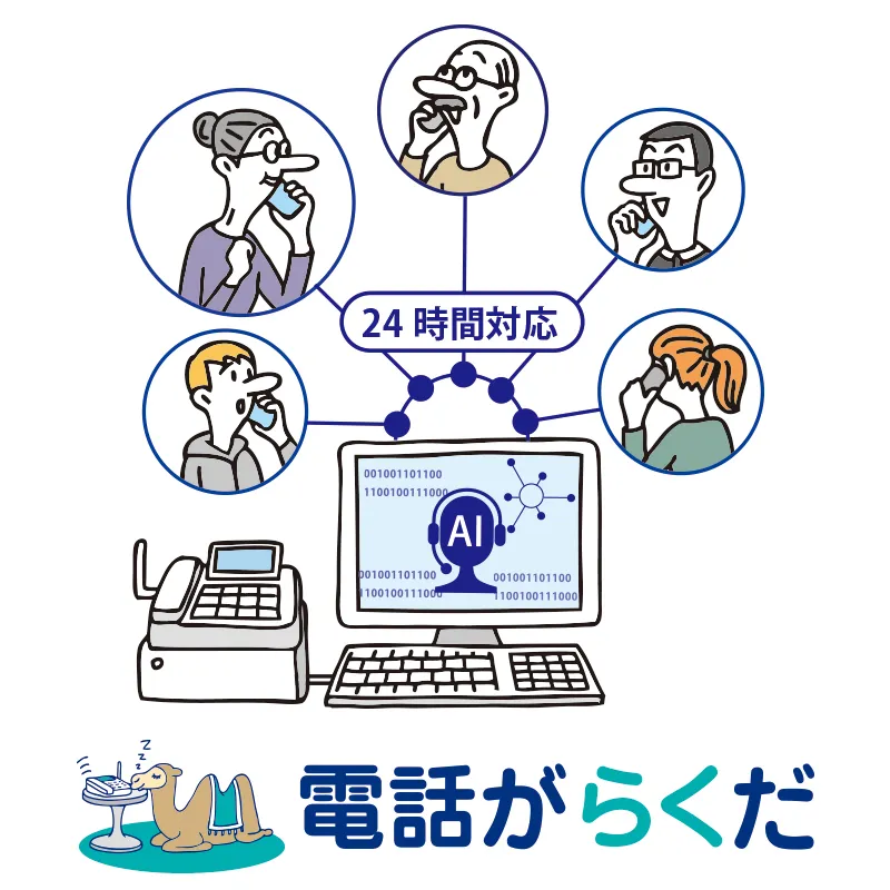 この予約に関する問い合わせをAIで解決するの「電話がらくだ」。
