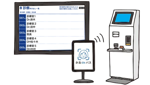 顔認証アプリ「かお de パス」は、患者さんがiPadに顔をかざすだけで受付が完了します。