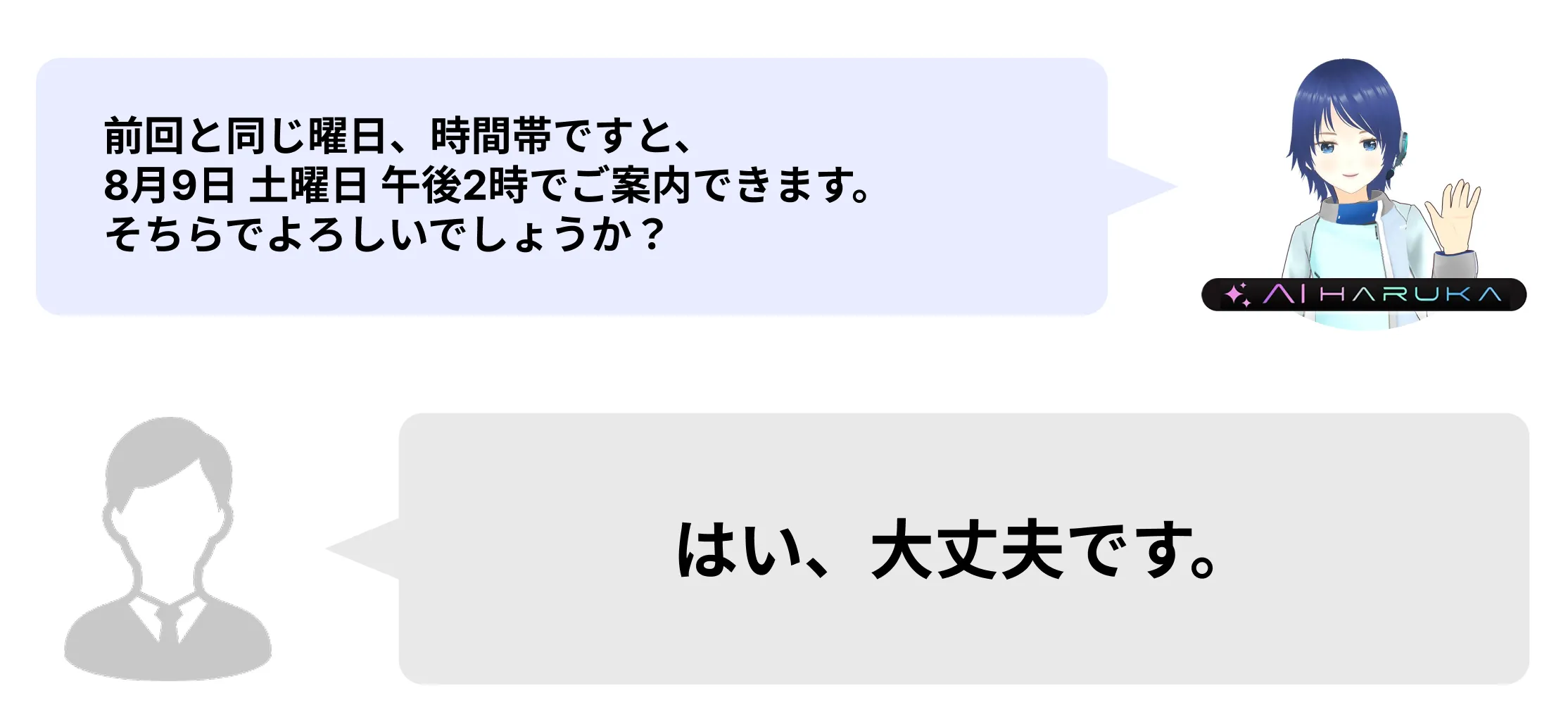 「ご予約についてのお問い合わせですね?」というように、“はい/いいえ”で答える形式の質問が中心でした。しかし、新バージョンでは、会話の入り口が「本日はどうされましたか?」というオープンな問いかけに変わります。