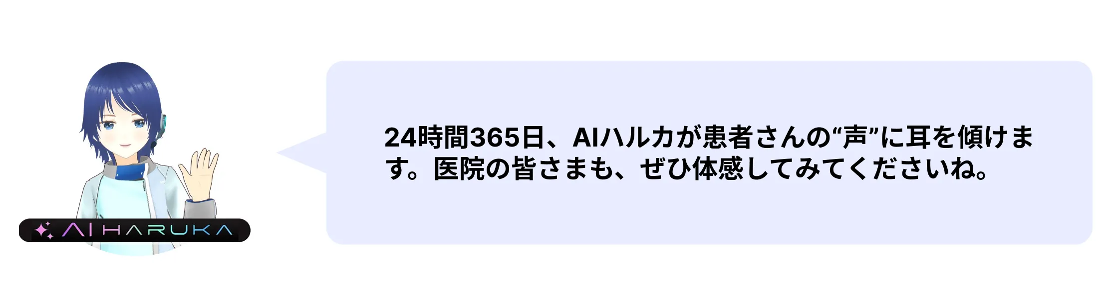 たとえば「本日はどうされましたか?」というAIハルカの問いかけに対し、患者さんから次のような応答があった場合、