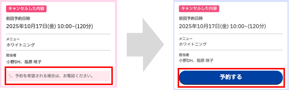 アップデート②:キャンセル済みの斜め予約もWebから再予約可能に!