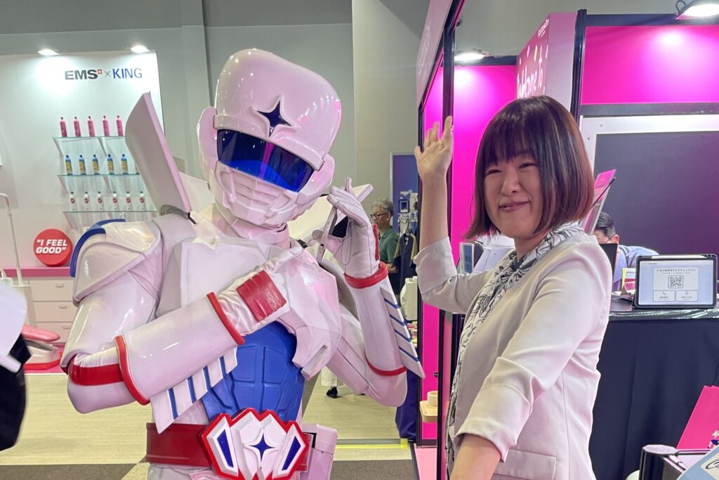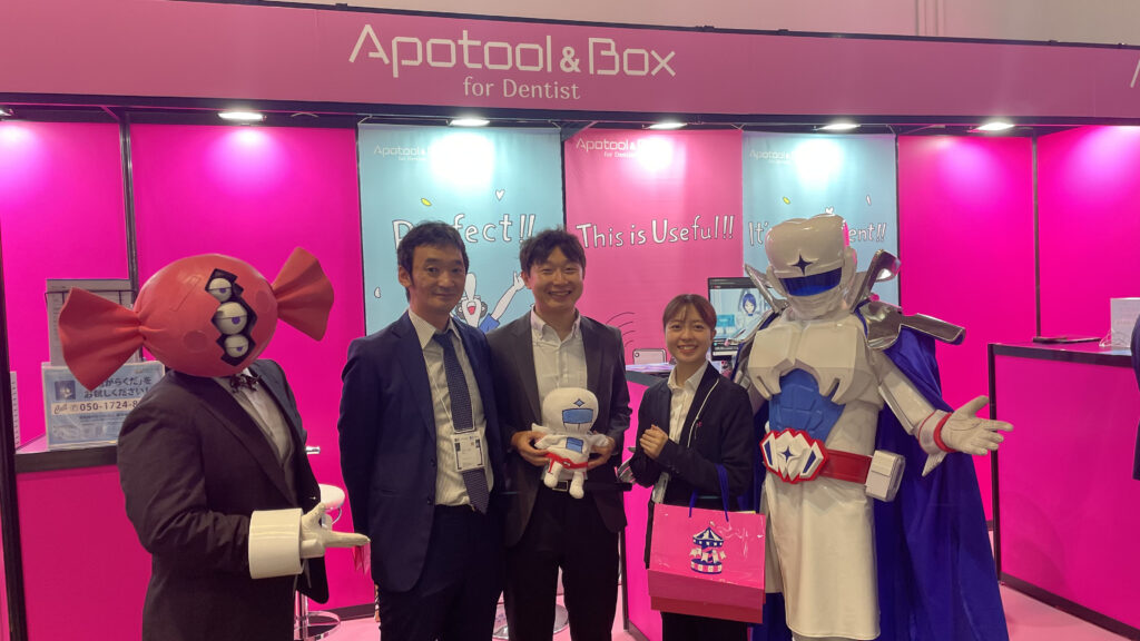 そして今回、会場でひときわ注目を集めていたのが、歯科業界の人気キャラクター「口腔戦士デンタマン」と「ミュータンスくん」!ブーススタッフも思わずテンションが上がり、一緒に記念撮影させていただきました。