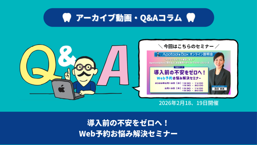 そんなお悩みをお持ちの医院さまに向けて、『導入前の不安をゼロへ! Web予約お悩み解決セミナー』と題したセミナーを開催しました。