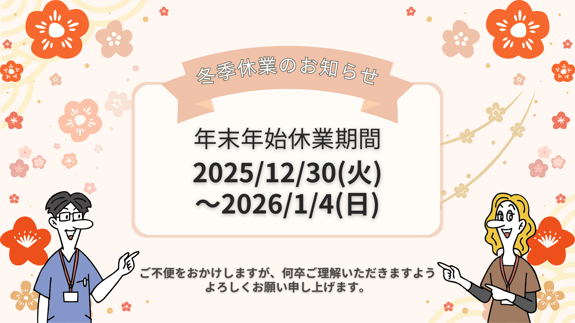 年末年始休業期間:2025年12月30日(火)〜2026年1月4日(日)