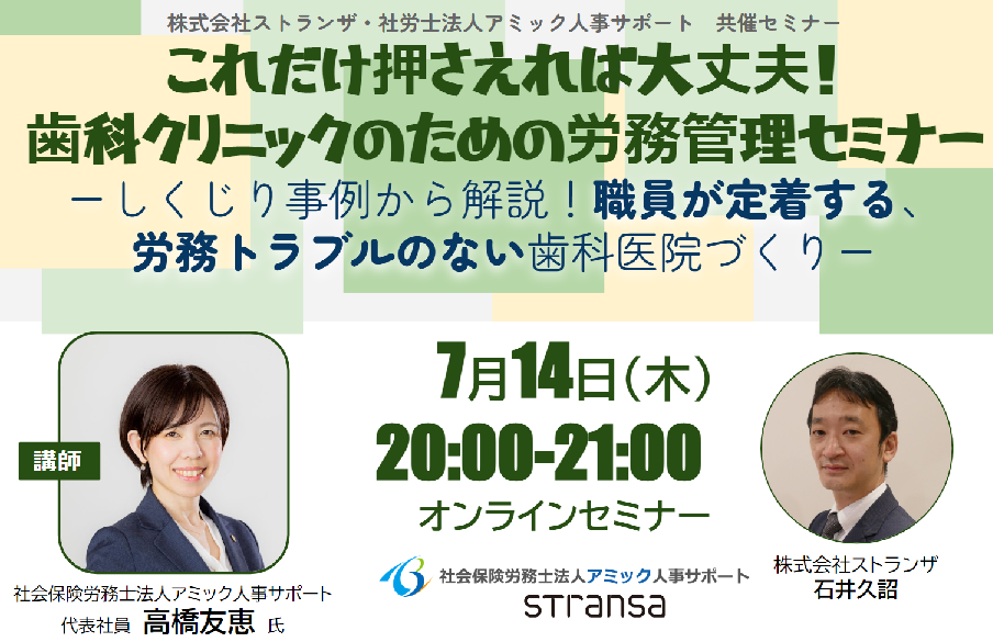 セミナー・イベント情報ご検討中の医院様、ユーザー様に向けてセミナー・イべントを開催しています。 セミナー 2025年 12月23日(火) 19:30~21:00 東海発の女性歯科医師トークLIVE! 女性がリードする医院づくりとDX活用に迫る! 参加費 無料 セミナー 2025年 11月27日(木) 19:30~21:00 “予約改革”がスタッフ育成の第一歩!~自走するチームが医院を変える、スマートな経営革新~ 参加費 無料 セミナー 2025年 10月29日(水) 19:30~21:00 10年予後も夢じゃない! 明日からできる審美性と長期予後を実現する積層充填のレシピ 参加費 無料 セミナー 2025年 10月23日(木) 13:30~14:00 2025年 10月23日(木) 19:30~20:00 2025年 10月24日(金) 13:30~14:00 2025年 10月24日(金) 19:30~20:00 デジタル活用の第一歩 患者さんともっと向き合える歯科医院へ 参加費 無料 セミナー 2025年 10月15日(水) 19:30~21:00 スタッフ不足に、どう立ち向かう?無人化×DXで実現する新しい医院のカタチ 〜紙・電話からの脱却と業務効率化のリアル〜 参加費 無料 セミナー 2025年 9月25日(木) 19:30~21:00 【現役女性院長が語る】Apotool&BoxでDXを実現。継続的右肩上がりの経営戦略 参加費 無料 セミナー 2025年 8月18日(月) 13:30~14:00 2025年 8月18日(月) 19:30~20:00 2025年 8月19日(火) 13:30~14:00 2025年 8月19日(火) 19:30~20:00 30分でわかる!AI電話予約受付サービス「電話がらくだ」オンラインセミナー 参加費 無料 セミナー 2025年 8月7日(木) 19:30~21:00 「口管強」フル活用できていますか?メリット・実例・歯科衛生士活用事例まで徹底解説! 参加費 無料 セミナー 2025年 8月6日(水) 19:30~21:00 「受付のカオスが消えた日」~アポツールで叶えた、静かな待合室~ 参加費 無料 セミナー 2025年 7月30日(水) 19:30~21:00 「キャンセルなんか怖くない!」~Web予約70%超え!攻める歯科医院の予約戦略~ 参加費 無料 123…9次へ
